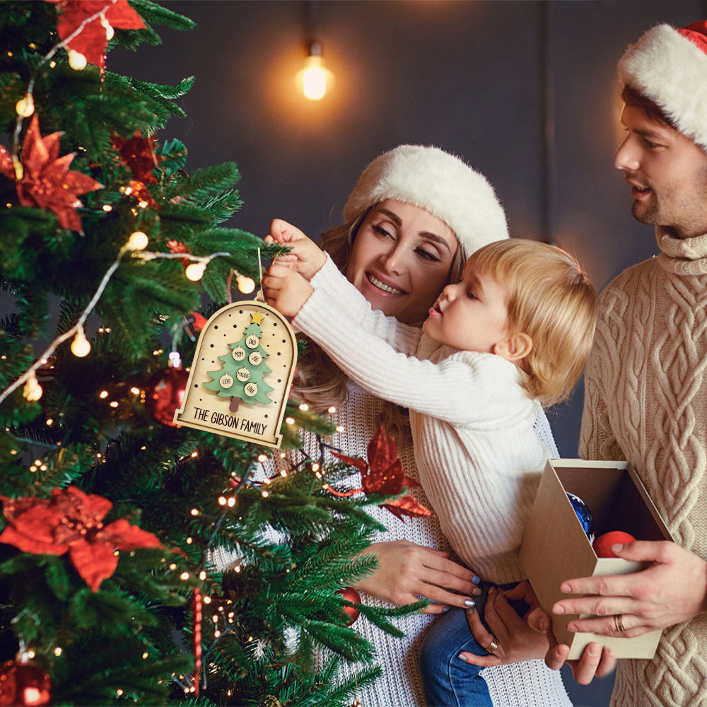 Produzido em madeira natural de alta qualidade, este ornamento é totalmente personalizável com os nomes da família. Ideal para pendurar na árvore, decorar a lareira, janelas ou até utilizar como detalhe em embrulhos natalícios, esta peça é o equilíbrio perfeito entre elegância tradicional e personalização moderna.